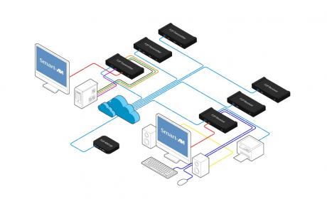 The P2P-KM100 is a compact, standalone hardware controller designed to provide centralized control and live switching for SmartAVI’s P2P KVM-over-IP product family.