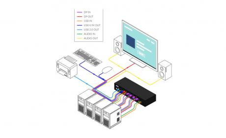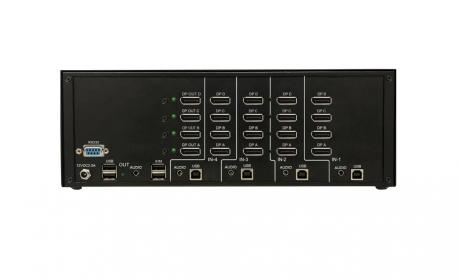 Quad Head 4-Port DisplayPort KVM Switch with EDID AUX Emulation