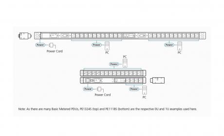 To monitor the power status of the connected devices, the units feature dual 3-digit 7-segment displays to show the input voltage and output current in real-time. The Basic Metered PDUs provide secure, centralized power usage of data center IT equipment, including servers, storage systems, KVM switches, network devices, to optimize power consumption and asset management.