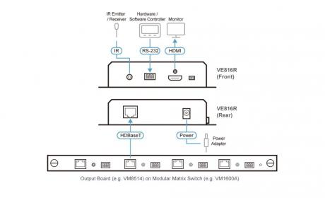 Supporting bi-directional RS-232 channel and IR signaling pass-through, the VE816R provides users with the path to remotely control the compatible devices. When working with an ATEN HDBaseT Matrix, the VE816R features Frame Sync and Cable Quality Tester technologies to ensure smooth video and intuitive cable testing process.