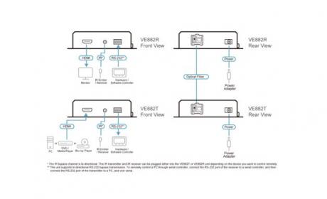 The VE882 can also extend the IR remote control and transfer RS-232 (up to 115kbps) in both directions, allows you to connect serial devices such as touch screens and barcode scanners.