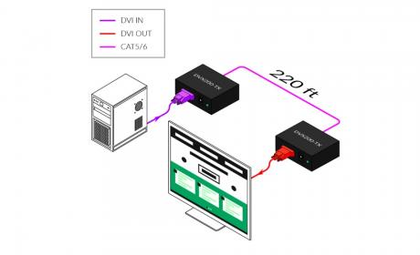 The DVX-200 is the perfect solution for extending DVI-D signals to a remote location. It is the ideal way to isolate a workstation computer into one location and a console in another. It is fully compatible with MAC, PC and LINUX DVI-D single link standards.