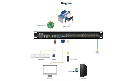 • Remote Access: Support 1 local user and 1 remote user, port share mode allows local and remote users to gain access to a server simultaneously