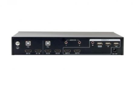 Kinan DM7202 is a 2-port dual monitor HDMI KVM switch that supports 2 monitors and allows users to control 2 computers simultaneously with 2 HDMI interfaces via a single USB keyboard and mouse. It is easy to set up this KVM switch with 2 monitors. Just plug the cables into the ports correctly according to the instructions. There is no complicated installation procedures and required software.