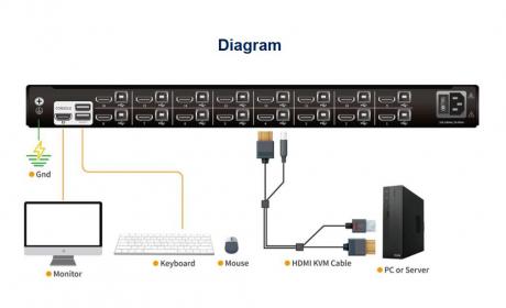 The RHD108 / RHD116 8/16-port USB DVI KVM Switch is a control device that support access and control up to 8/16 DVI computers from a single USB keyboard, USB mouse, and monitor console. Resolution is up to 1920 x 1080@60Hz.