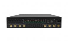 The HDR-8x8-XT is an 8x8 matrix switch that sends 4K (3840x2160 @30Hz) HDMI signals to output devices up to 328 ft away with CAT5/6 extension.
