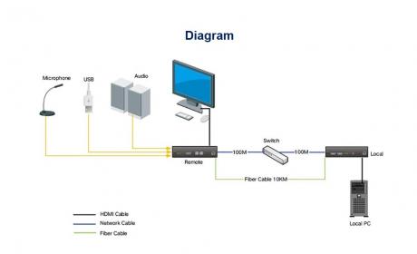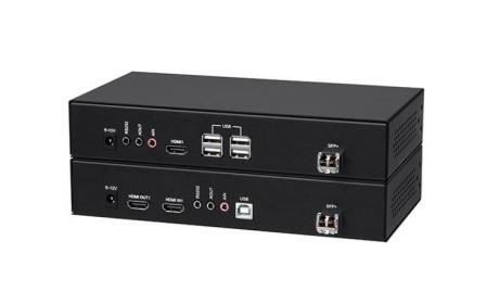 The KFH101S HDMI digital KVM extender delivers FHD HDMI video, USB, RS232, and stereo audio signals up to 300m over fiber optic cable.