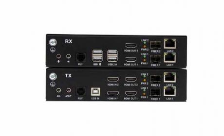 Kinan KFH268S HDMI dual view KVM extender over fiber/cat5 consists of a transmitter unit (KFH268S-TX) and a receiver unit(KFH268S-RX), supporting transmitting 2-channel video, mouse, keyboard, USB2.0 and other signals of the servers via optical fiber or Cat5 cables. This HDMI extender is used to extend the signals of the servers in the remote server room so that the users can control devices remotely.