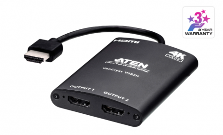 The ATEN VS82H splitter offers you superior video resolution of True 4K and lossless quality when sending one source of digital high-definition video to two displays. It supports HDMI-enabled equipments from DVD players, satellite set-top boxes to all HDMI displays.