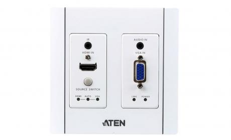 ATEN VE2812AUST is a transmitter for sending VGA (with audio) and HDMI signals up to 100 m over a single Cat 5e/6/6a or ATEN 2L-2910 Cat 6 cable. Featuring built-in PoH (Power over HDBaseT) function, the VE2812AUST receives power supply from the HDBaseT output port on the connected device. This eliminates the need for a power adapter and reduces the hassle of power line deployment behind the wall.