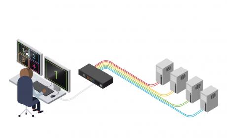 The ADDERView CCS-MV, a desktop multi-viewer switch, provides simultaneous, real-time 4K KVMA access of up to four computers from a single workstation. Users can instantly take control of the target computer by simply moving the mouse between windows, providing the experience of a single desktop.