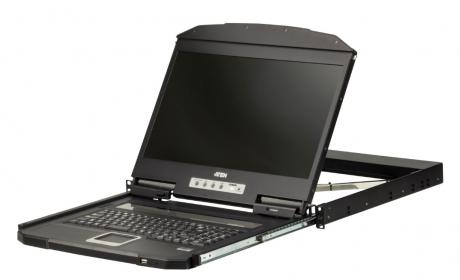 The CL3700 USB HDMI LCD Console is a short depth single rail LCD KVM console featuring an 18.5" LED-backlit widescreen LCD monitor with an integrated keyboard and touchpad. The short-depth design fits all 19" equipment cabinets, and is especially suitable for shallow racks. The CL3700 provides an ideal space-saving solution for special environments such as outside broadcast vans (OB vans) and compact control rooms.