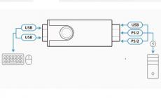 • Converts USB keyboard and mouse signals into PS/2 signals