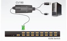 The CV190 is a DisplayPort console converter. It fully supports ATEN KVM switches, which use specially designed 15 pin Special High Density connectors (SPHD-15) to transmit the KVM data between the switch and the computer.