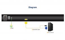 • The HD console can be connected to a PC or a KVM switch to control and manage single / multiplePCs.