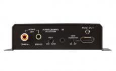 Designed to optimize flexibility, the VE2812PR ships with 2-way PoH capability, either allowing a PoH PD-enabled Tx (VE2812AT series is recommended) to be remotely powered by the locally powered VE2812PR, or enabling power distribution along the cable from a PoH PSE-enabled Tx (VE1812T is recommended) to the VE2812PR. Speaking of VE2812PR’s audio de-embedding, audio signal can be extracted from the incoming HDMI source and then transmitted through Coaxial or Stereo output to external audio distribution systems.
