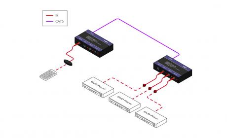 Smart AVI HDC-IR sends IR and Power signals over CAT 5 Extender